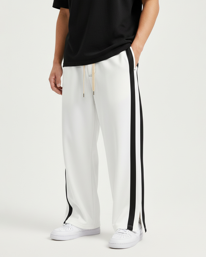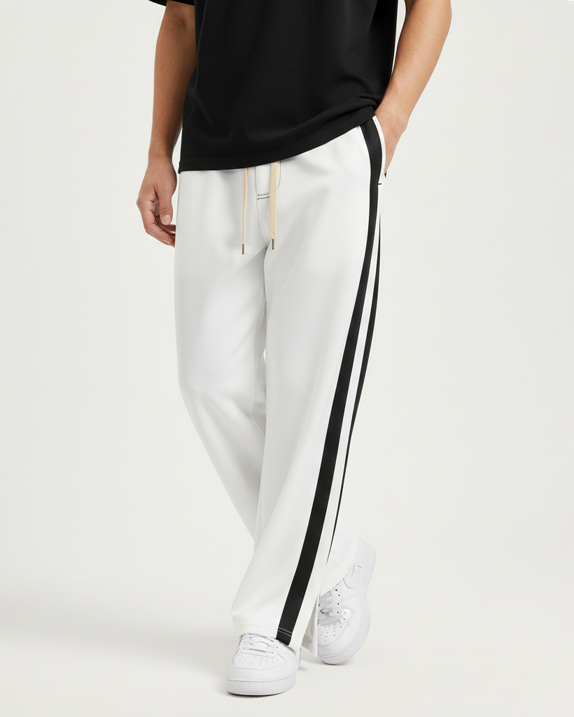 3 POCKET BOOT CUT BAGGY JOGGERS-WHITE