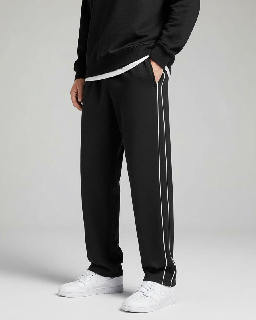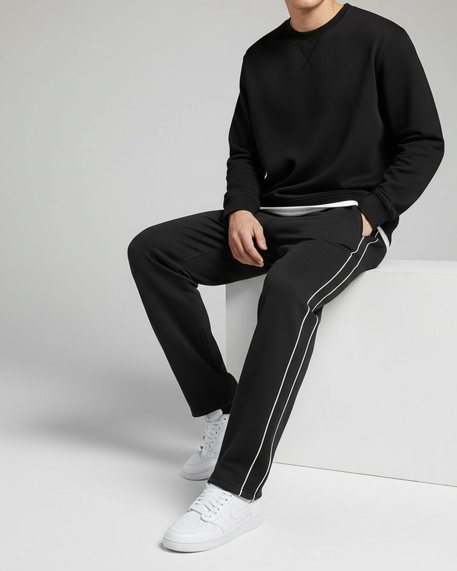 Featuring a sleek black design with bold white side stripes, these joggers are a versatile staple for your everyday wardrobe. Whether you’re lounging at home, hitting the streets, or heading to a casual outing, the relaxed fit and soft texture ensure all-day comfort without compromising on style.